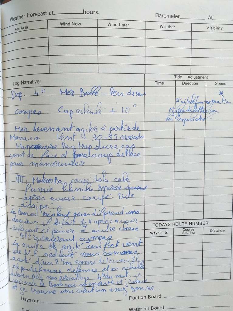 Att. : Moteur bâbord coupé dans la cale. Fumée blanche repérée après avoir coupé. Vite dissipée.