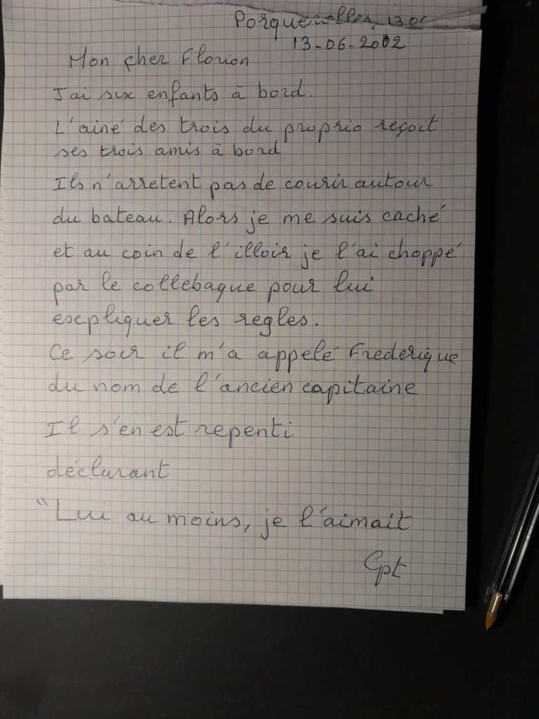Ce soir il m’a appelé Frédérique du nom de l’ancien capitaine