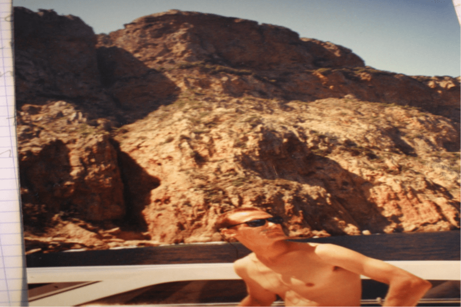 Sa femme, la guindée momoune me mire. Le Skipper encre Minouche au coeur. De la Nef de la cathédrale de l’au delà de la Scandola. Mûre mure à sa copine : Mé késkilébo.